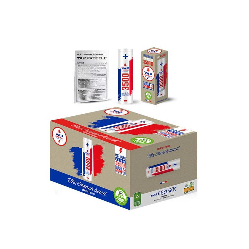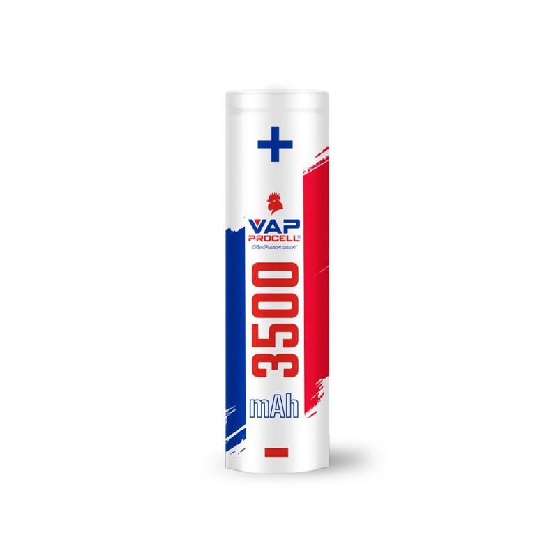 L'Accu IMR 18650 Power 3500mAh Vap Procell se démarque par son design élégant et patriotique. Arborant les couleurs bleu, blanc et rouge, il affiche fièrement son origine française. Ce design unique permet non seulement de reconnaître facilement la marque, mais aussi d'identifier rapidement la capacité de la batterie grâce à un code couleur intuitif.