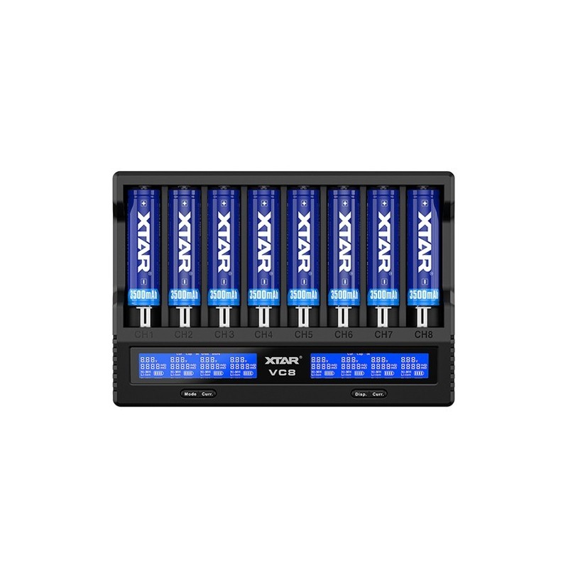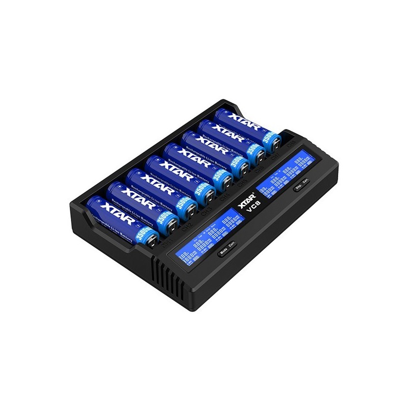 Le chargeur VC8 Xtar Light est un chargeur intelligent polyvalent capable de recharger jusqu'à 8 accus ou piles simultanément. Doté d'un port USB-C pour une charge rapide de 3A, il dispose d'écrans LCD pour suivre la charge en temps réel.