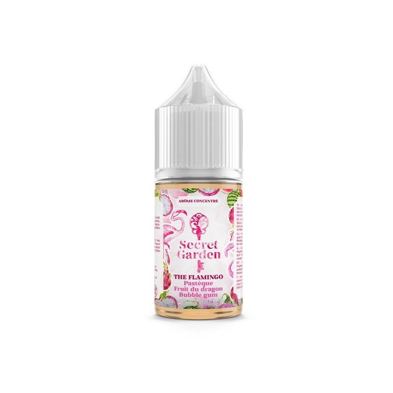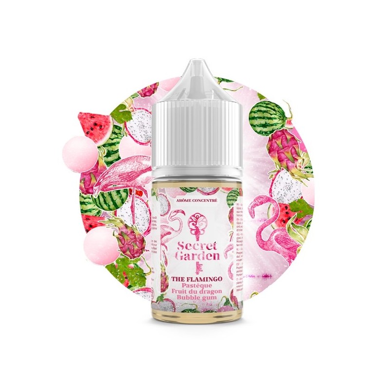 Plongez dans un univers exotique avec The Flamingo Secret Garden, le dernier concentré e-liquide de la marque Secret's Lab. Ce mélange unique promet une expérience gustative incomparable, combinant à la perfection les saveurs juteuses de la pastèque, l'exotisme du fruit du dragon et la douceur nostalgique du bubble gum.
