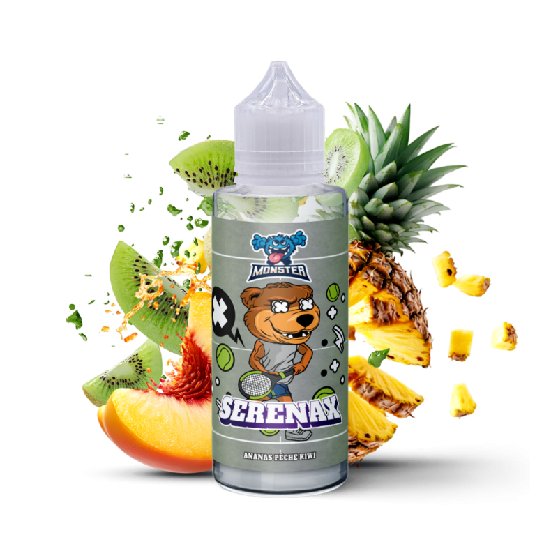 Le SERENAX Monster combine trois fruits tropicaux : l'ananas juteux, la pêche veloutée et le kiwi acidulé pour créer un profil gourmand unique et équilibré.