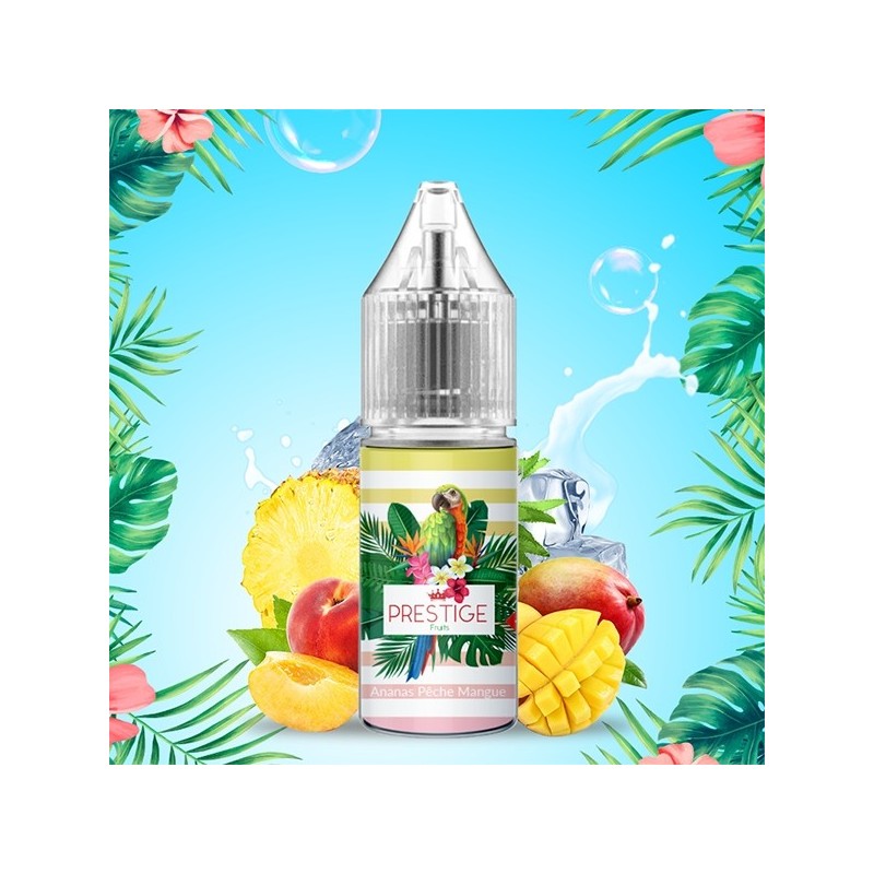 Plongez dans un paradis tropical avec notre e-liquide Ananas Pêche Mangue Salt de la gamme Prestige Fruits. Ce cocktail exotique allie la douceur de la pêche, l'acidité de l'ananas et la suavité de la mangue pour une expérience de vapotage fruitée et rafraîchissante.