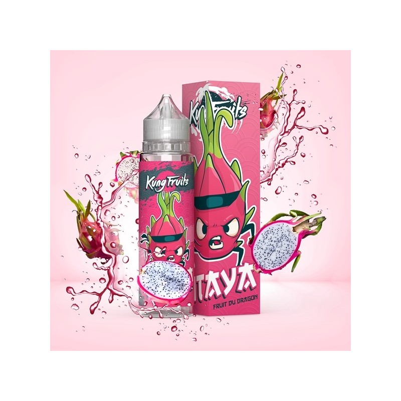 L'e-liquide Pitaya de la gamme Kung Fruits se distingue par son packaging coloré et original. Le flacon de 50ml est présenté dans une boîte rose vif ornée d'un personnage ludique représentant le fruit du dragon. Ce design accrocheur reflète parfaitement le caractère exotique et dynamique de la saveur qu'il contient.