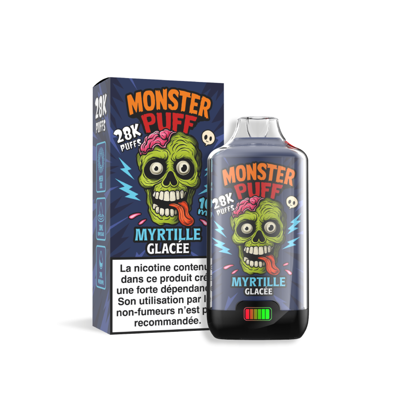 Commandez votre Puff Monster 28k Myrtille Glacée maintenant - Expédition rapide chez Cbdeau Vape !